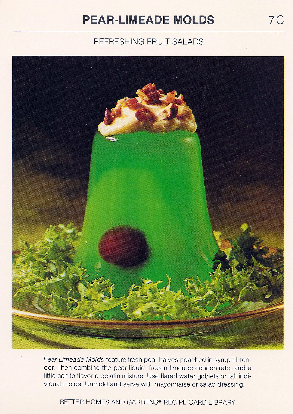 Why mayonnaise? It’s always mayo with these recipes. Gelatin, mayo and walnuts.