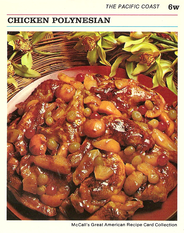 5. Next day: About 1 1/2 hours before serving, preheat oven to 350F. Bake chicken, uncovered, 30 minutes, basting often. Add fruit. Bake, 30 minutes longer, or until piping hot, basting several times. Makes 12 servings.