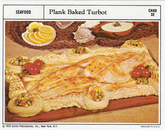 Set oven temperature at 500° or “Broil.” Pour lemon juice on fish; season with salt and pepper and paprika. Place fish in greased broiler pan and broil about 4 inches from heat – 8 to 10 minutes or until fish flakes easily when tested with a fork. Carefully transfer fish onto a plank. Meanwhile, prepare instant potatoes according to package directions. Using pastry decorator, spread potatoes around plank, forming 6 cups for vegetables. Cook vegetables according to package directions; drain well and place in decorated cups. Place plank in broiler for 3 to 4 minutes to lightly brown. Serve with lemon wedges and tartar sauce.