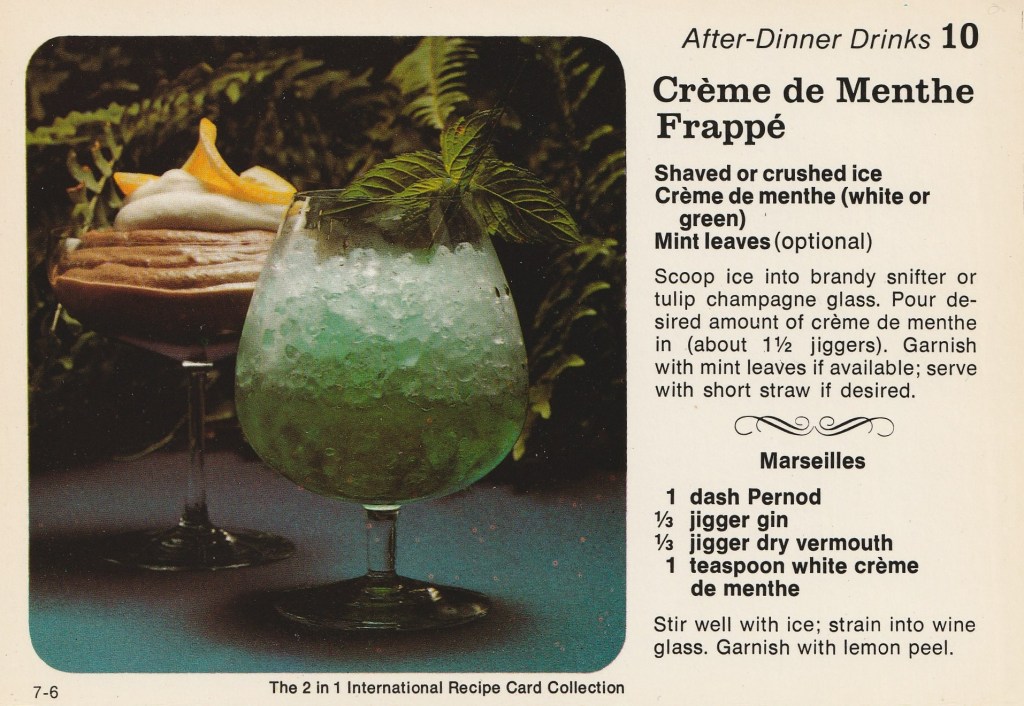 Crème de Menthe Frappé and Quick Orange-Chocolate Mousse