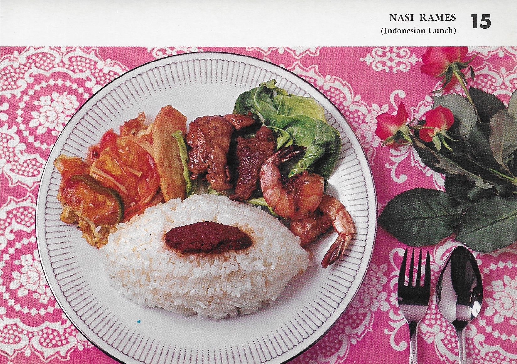 NASI RAMES is very famous among Indonesian people. They use it as lunch and dinner. SAMBAL is usually eaten with NASI RAMES and it is hot because it contains chili pepper.