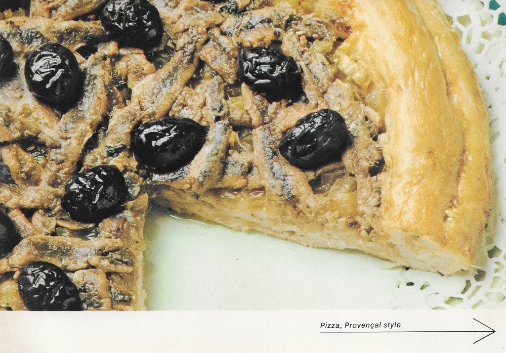 Pizza à la Andy: Combine ½ cup minced sautéed onion, ½ cup minced sautéed green pepper and ¾ cup chopped Italian sausage. Prepare 1 recipe Pizza Pie, above, but substitute the onion mixture for the anchovy fillets. Bake as directed above.