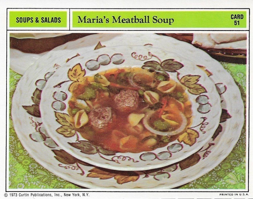 Bring water to a boil in a large kettle; add 1 tablespoon salt and bones. Cover and simmer 1½ hours (remove scum while simmering). Remove bones from broth. Prepare meatballs by combining beef, egg, flour, garlic, onion, tomato, 1 teaspoon salt and pepper. Shape into small balls the size of a walnut and drop into boiling stock. Add carrots, sliced onions, peas, celery and tomato sauce; cover and simmer 20 minutes. Adjust seasoning. Add cooked noodle shells, heat through and serve.