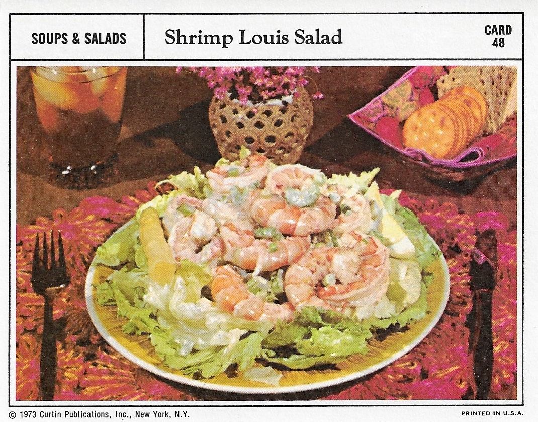Prepare dressing at 30 minutes ahead of serving time. Mix all ingredients and chill. Place lettuce on individual plates. Arrange remaining ingredients on lettuce. Serve with Louis dressing. Note: Cherry tomatoes, olives, radishes, and avocado slices are also suitable for this salad.