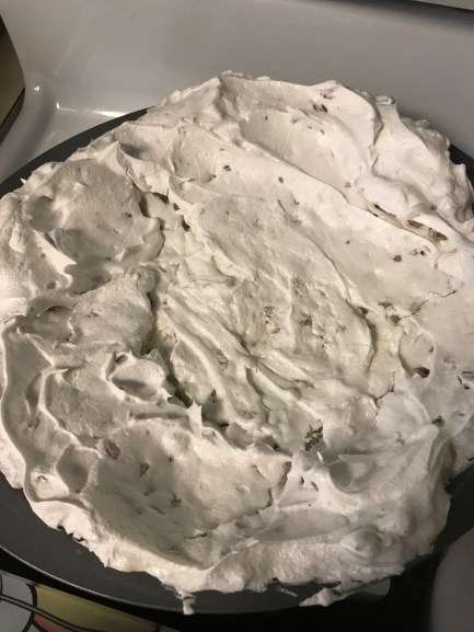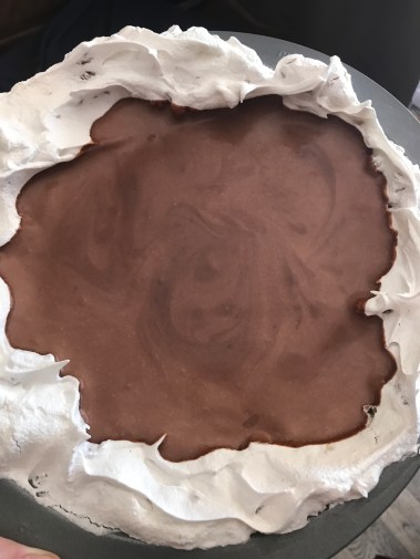 Monty’s Angel Pie is a pretty basic recipe for a chocolate cream pie in a meringue shell. Nothing I couldn’t whip up half drunk on a Saturday night, which is exactly what I did.
