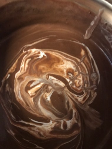 The filling was quick and easy, but I think I fucked up a step because I read the directions of “Whip Cream” as that I was to add the whipped cream to the chocolate. Like I said, bourbon is my sous chef. ZONK!