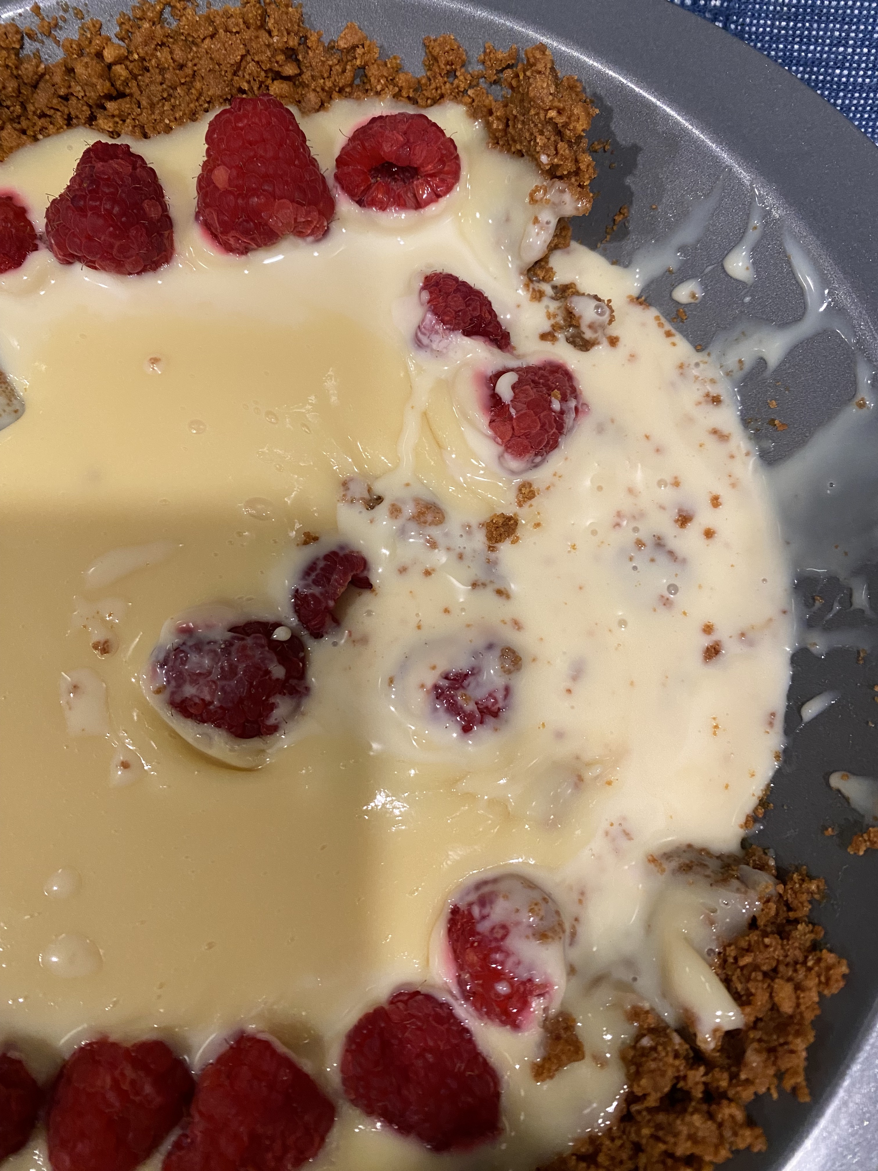 The pie, however, was just a puddle of sugar that never actually set. I mean it pretended to. I left it in the fridge for 2 days before trying to cut it and there was no visible wiggle, but nope. Nothing doing. This could be because heavy whipping cream isn’t the same consistency as double cream. Also, I substituted raspberries for grapes because that’s just a weird pie topper as far as I’m concerned. Grapes are for wine.