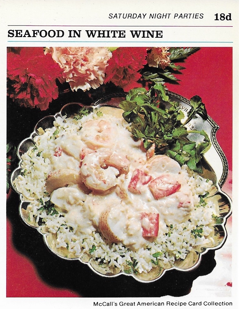 7. Add wine, stirring until well combined. Add seafood; stir gently until combined. Cook over low heat until heated through. (Do not boil.) Add more half-and-half if sauce is too thick. Makes 12 servings.