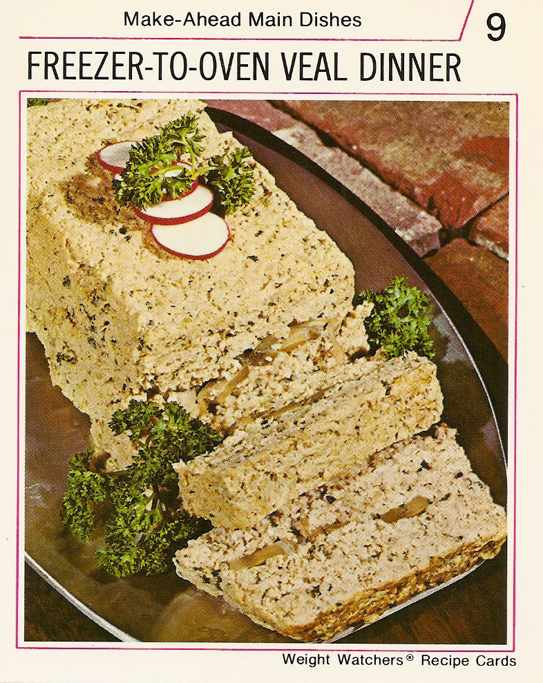FINAL PREPARATION: Thaw veal loaf. Bake on a rack at 375°F (moderately hot oven) for 1 hour, or until well done. Arrange on serving platter. Garnish with radish slices and parsley sprigs. Divide evenly. Makes 4 dinner servings.
