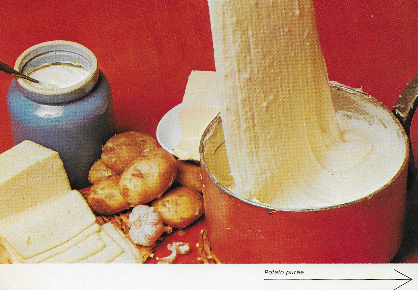 - Chop the ham, garlic, and shallots, and sauté in melted lard in a frying pan. Do not brown.