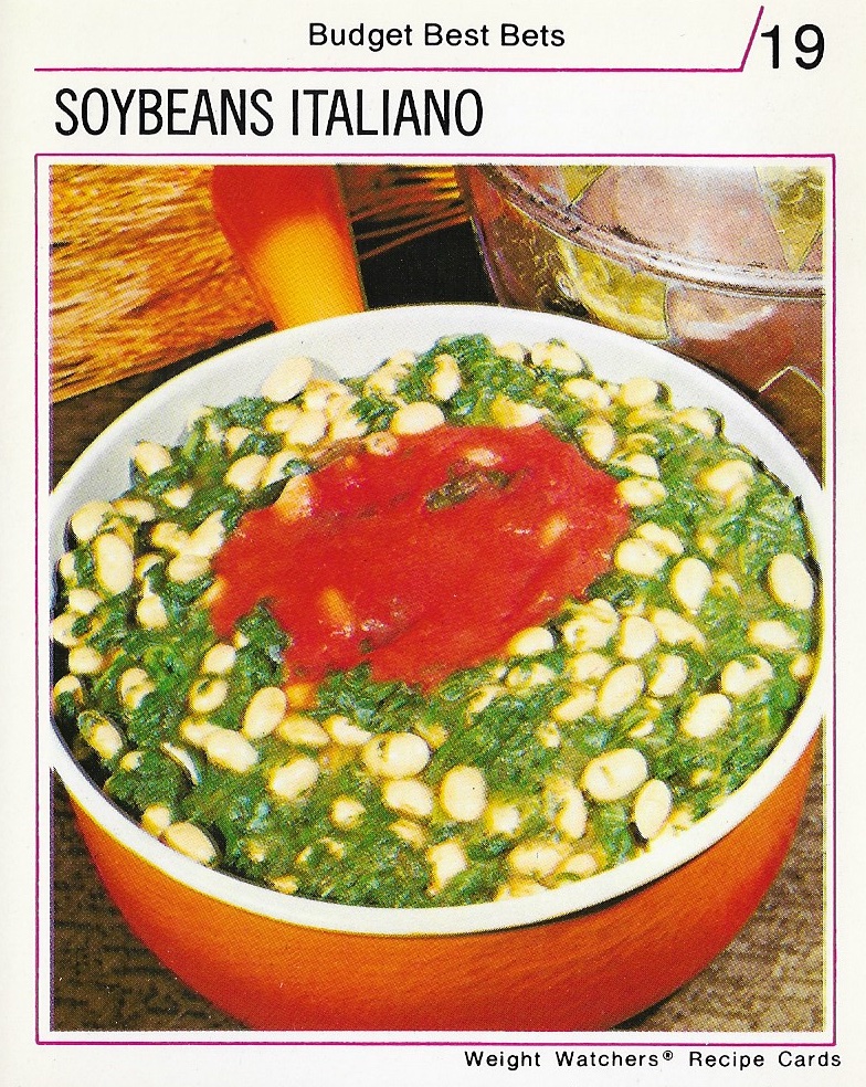 Bring ½ cup Tomato Sauce Italiano to a boil in a saucepan. Add spinach. Simmer covered, 5 minutes, or until spinach is cooked. Add remaining Tomato Sauce and soybeans. Cook over low heat for 5 minutes, or until heated throughout. Makes 2 dinner servings.